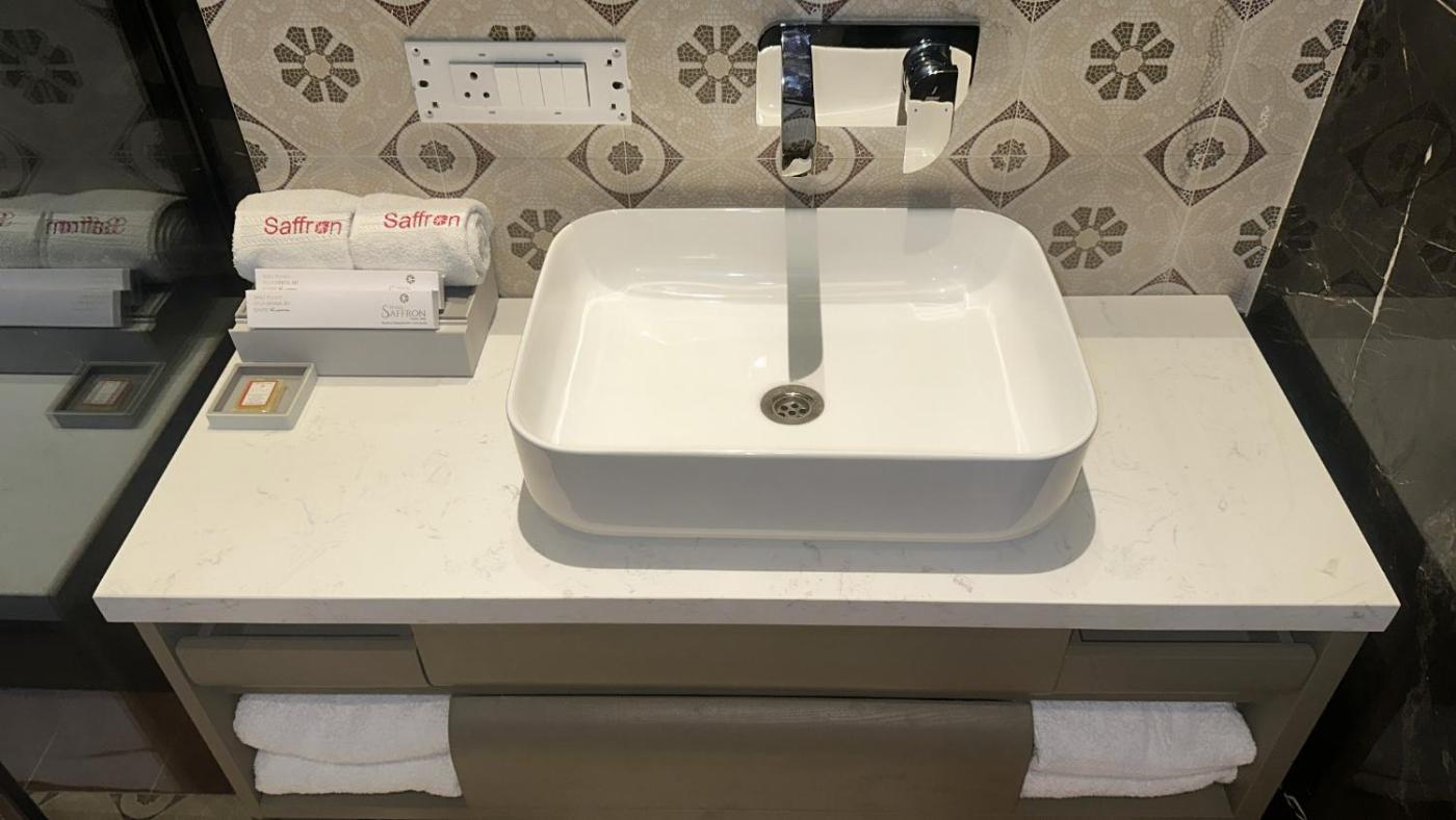 At the hotel,rooms are fitted with a desk.guest rooms in Hotel Saffron are fitted with a flat-screen TV and free toiletries.