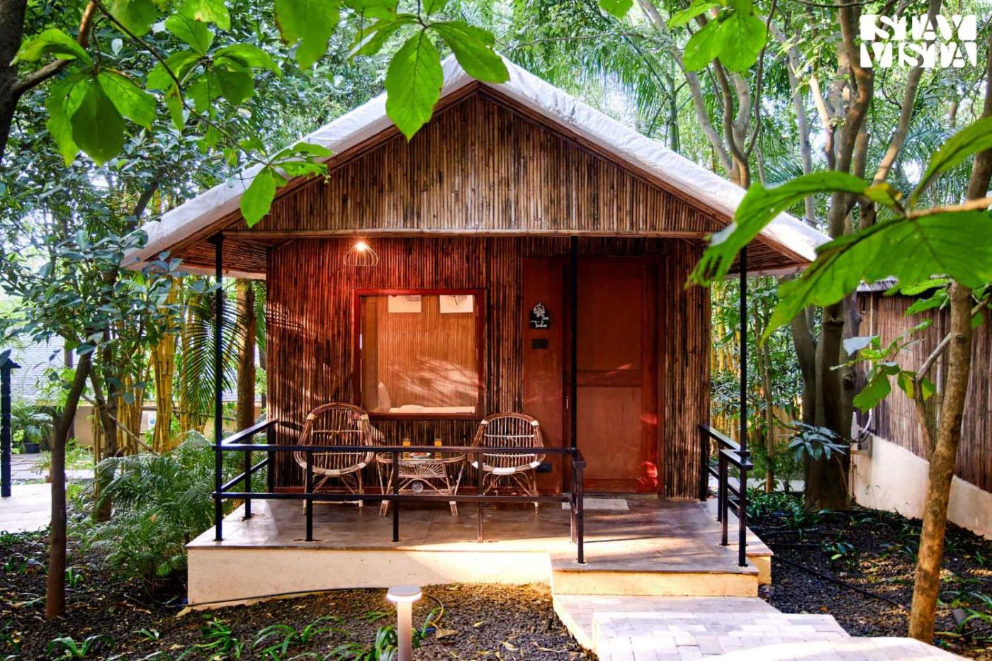 Guest rooms at the resort are equipped with a seating area. Featuring a private bathroom with a bath and free toiletries, rooms at StayVistas Timber Cottage - Cozy Cottages with Indoor Games also offer a garden view.units at the accommodation include air conditioning and a wardrobe.